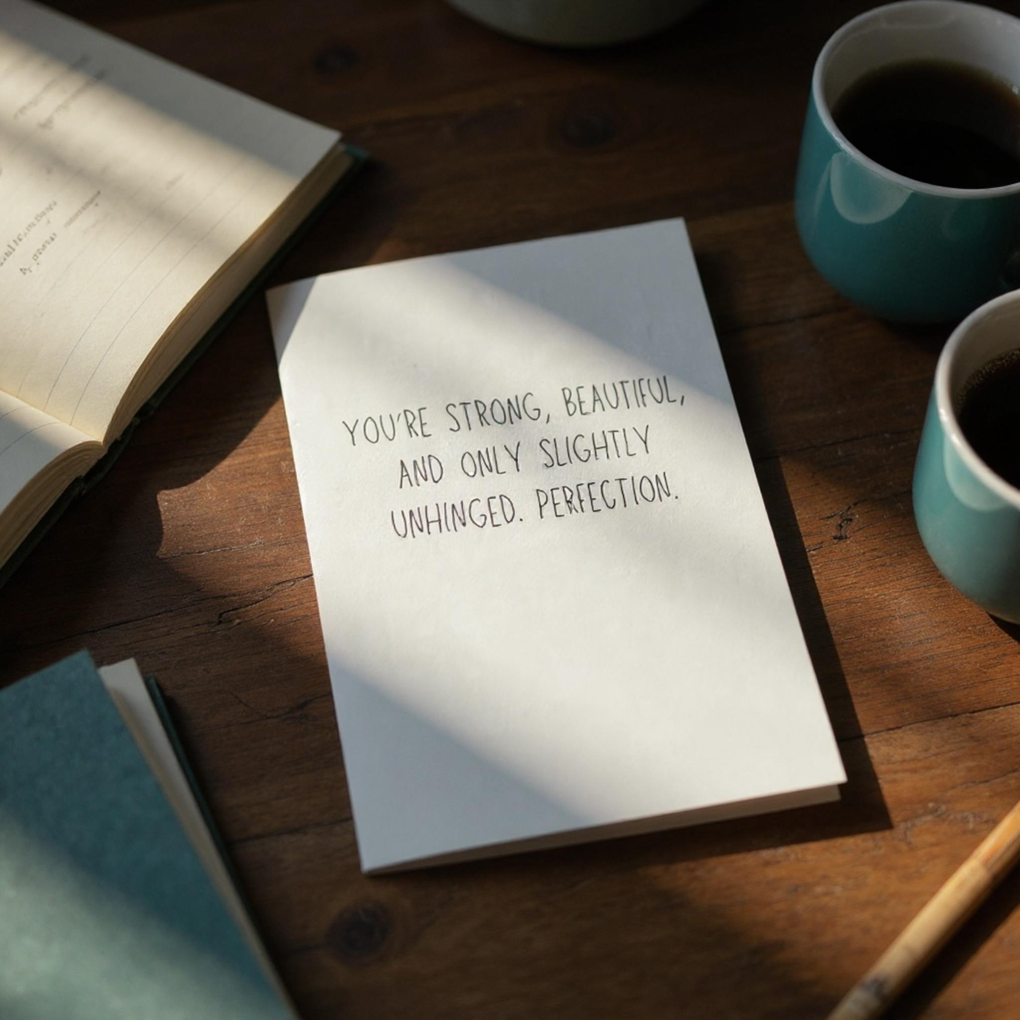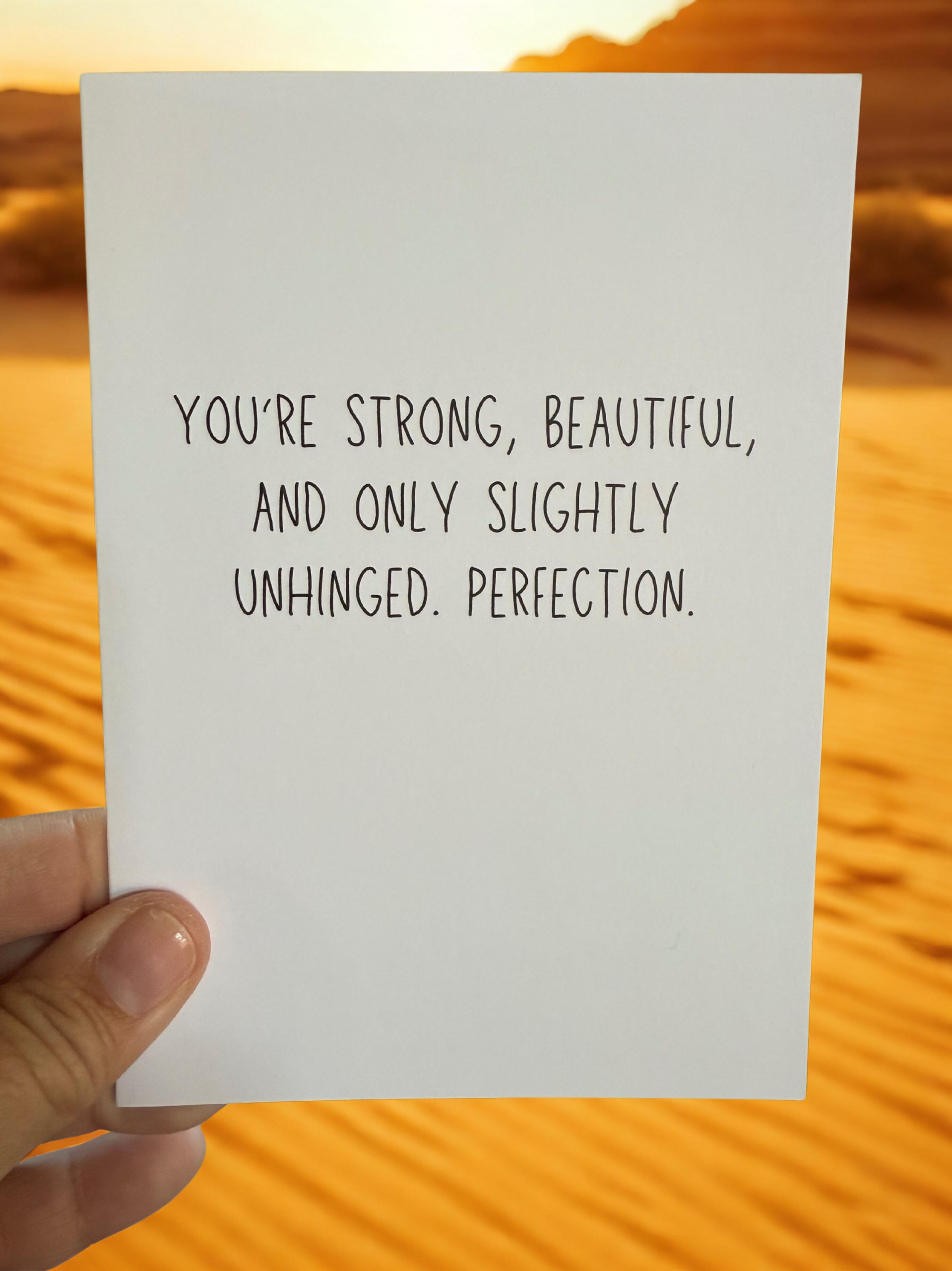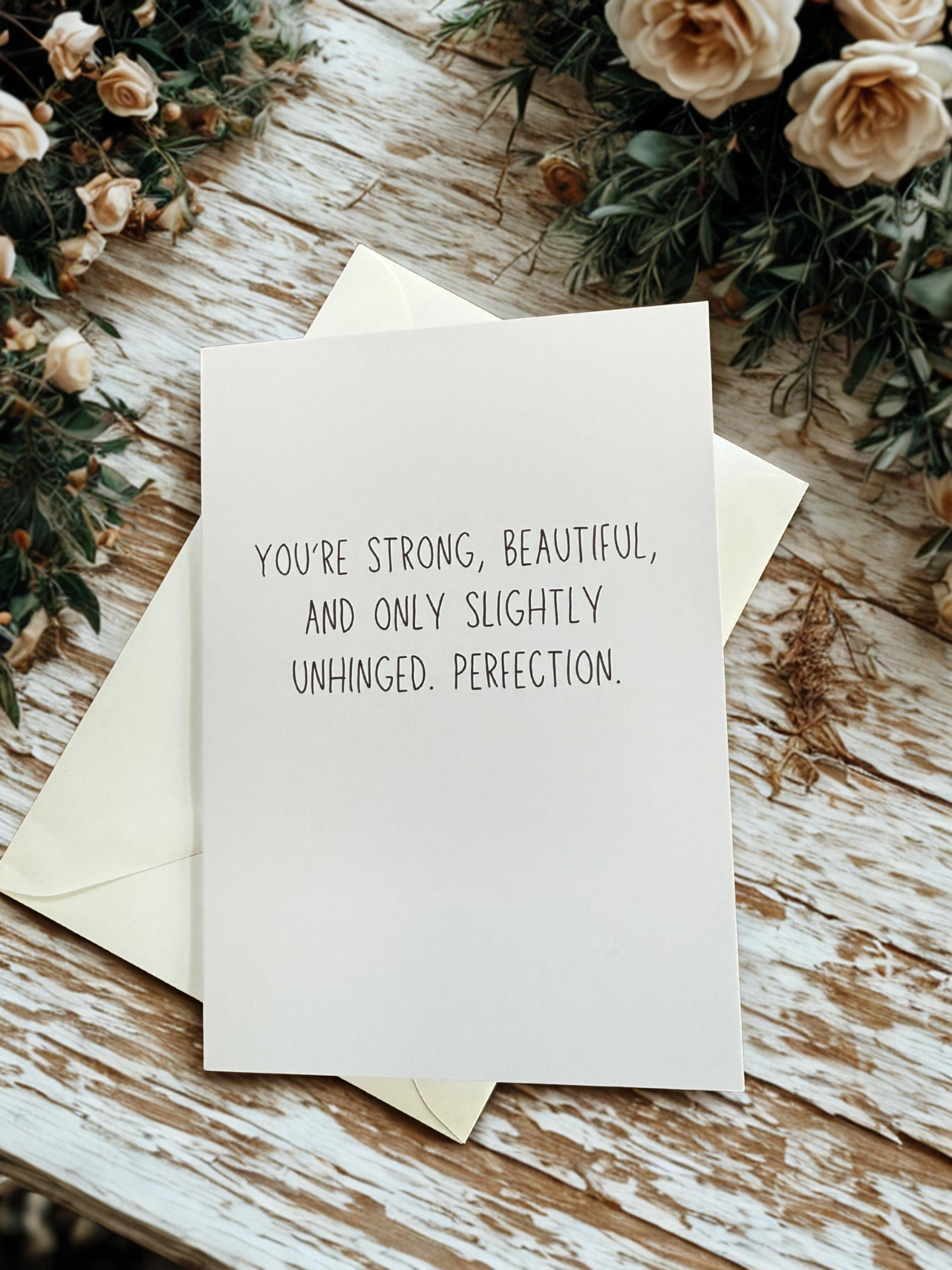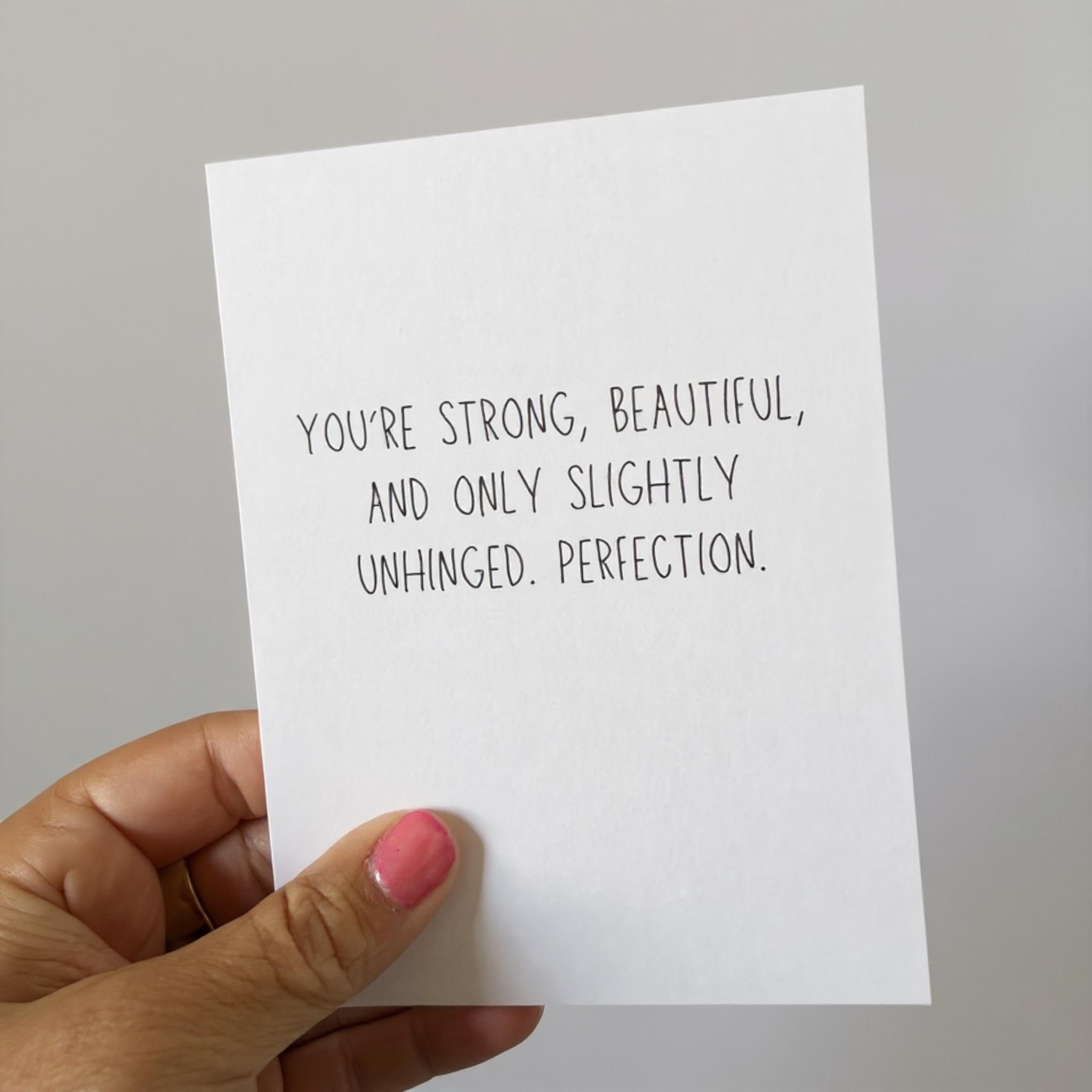 Funny Blank Card “You’re Strong, Beautiful, And Only Slightly Unhinged”