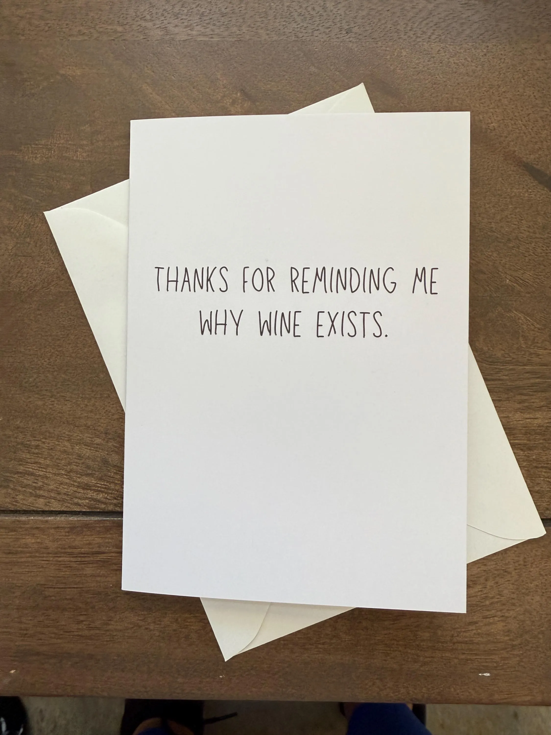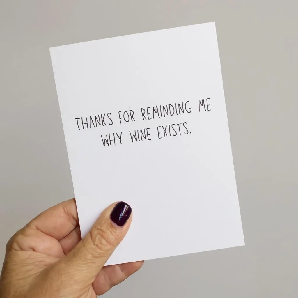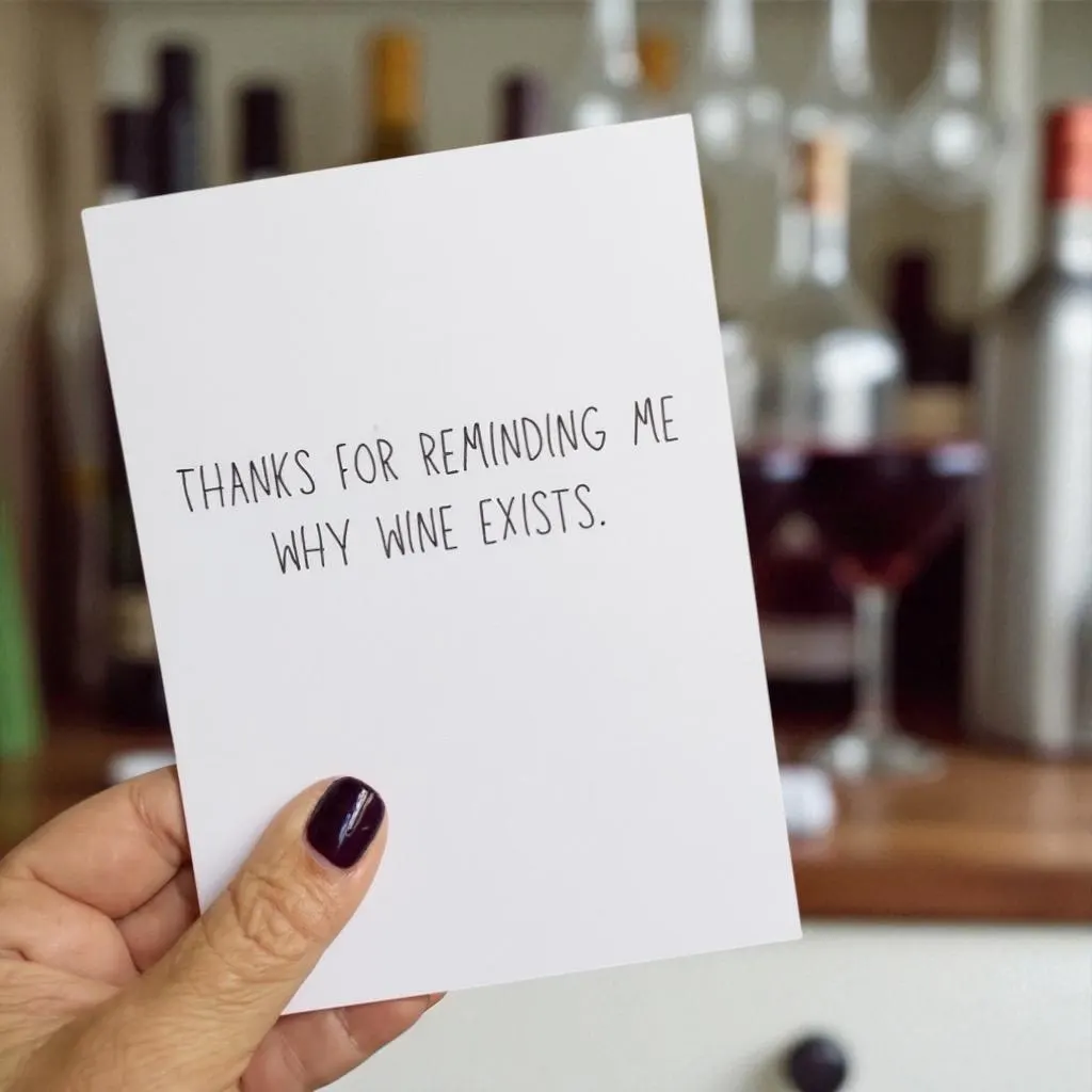 Funny Blank Card: “Thanks For Reminding Me Why Wine Exists.”